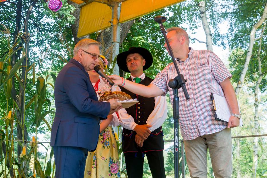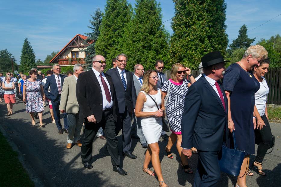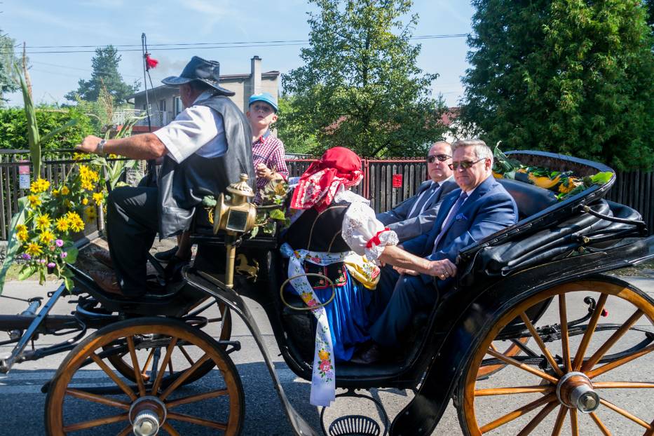 Niedziela również stała pod znakiem działań zabezpieczających. W tym dniu odbyła się Procesja Odpustowa wokół Kościoła Świętego Krzyża w Mysłowicach. Na tej uroczystości zadaniem naszych strażników było zabezpieczenie trasy, aby wierni mogli bezproblemowo uczestniczyć w tym obrządku religijnym. Tego samego dnia odbyły się także Centralne Dożynki. Rolnicy i mysłowiczanie dziękowali za zbiory i bawili się po żniwach na dożynkach, które w tym roku zorganizowano w dzielnicy Ławki. Obchody tego szczególnego dnia rozpoczęły się przejazdem bryczkami oraz maszynami polowymi przez Ławki aż do kościoła, gdzie o 11.15 jadący tymi pojazdami mieszkańcy oraz miejskie władze udali się na uroczystą mszę świętą. Podczas mszy zostały poświęcone zebrane przez pobliskie gospodarstwo plony. Po mszy wszyscy uczestnicy obchodów udali się kolorowym korowodem, z orkiestrą dętą Mirosława Kaszuby na czele, na boisko, na którym odbywał się festyn. Na obchody Święta Plonów przybyła ogromna liczba mieszkańców Mysłowic oraz ich krewnych, a na festynie czekały na nich liczne atrakcje. Mysłowiczanie mogli posłuchać wykonawców, takich jak Orkiestra Górnicza KWK Mysłowice-Wesoła, Jacek Silski, Bajery, a także młode wokalne talenty z Mysłowic, czyli Kornelia Musioł, Wiktoria Kozioł oraz Natalia Szymańska. Również swój pokaz zaprezentował widzom zespół tańca Galwey. Najmłodsi uczestnicy imprezy mogli pobawić się na dmuchańcach oraz zobaczyć tradycyjne maszyny do pracy w polu. Były również panie w tradycyjnych strojach śląskich, które dodatkowo ubarwiały całe to wydarzenie. Na całym terenie dzielnicy zostały przygotowane przez mieszkańców ozdoby, wykonane m.in. ze słomy oraz zebranych w tym roku warzyw i owoców. Ławki prezentowały się tego dnia przepięknie. Na tej imprezie również nie mogło zabraknąć i naszych strażników. Funkcjonariusze zabezpieczali przejazd bryczek i pieszego korowodu. W trakcie imprezy czuwali nad bezpieczeństwem uczestników święta plonu. Ponadto strażnicy rozdawali elementy odblaskowe a dzieciom udostępnili radiowóz, który był wielką atrakcją dla najmłodszych.