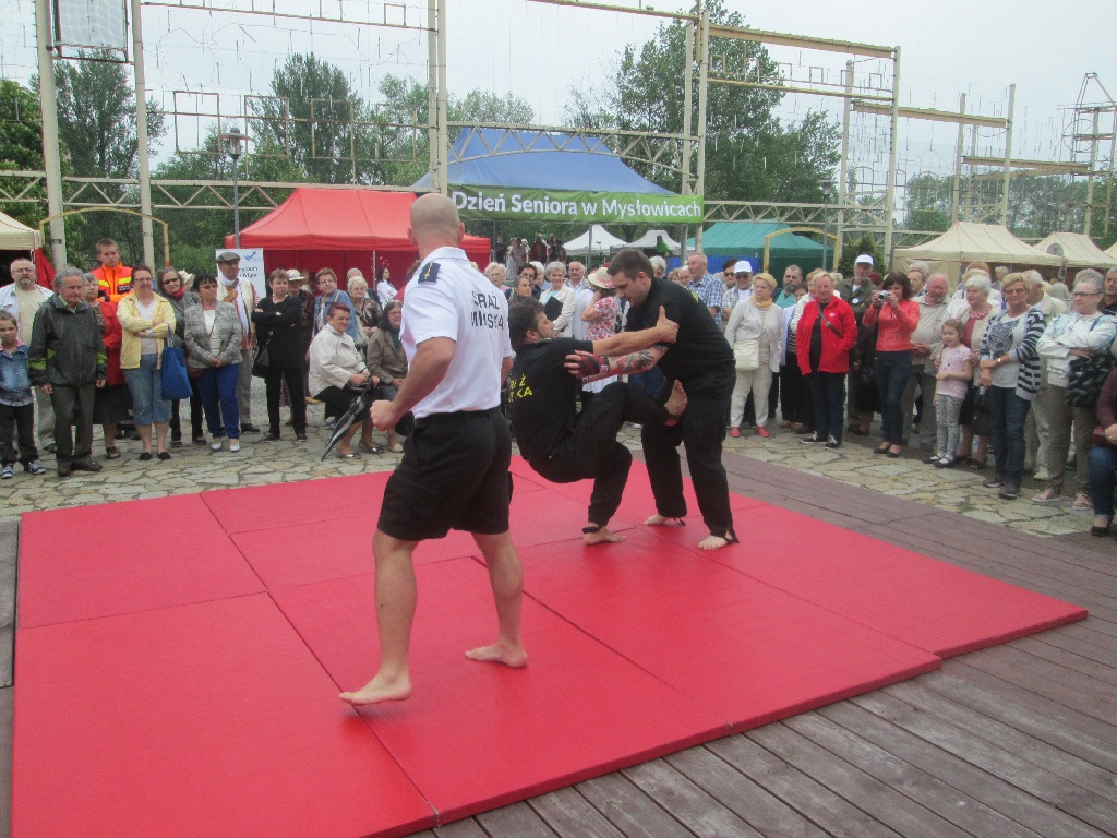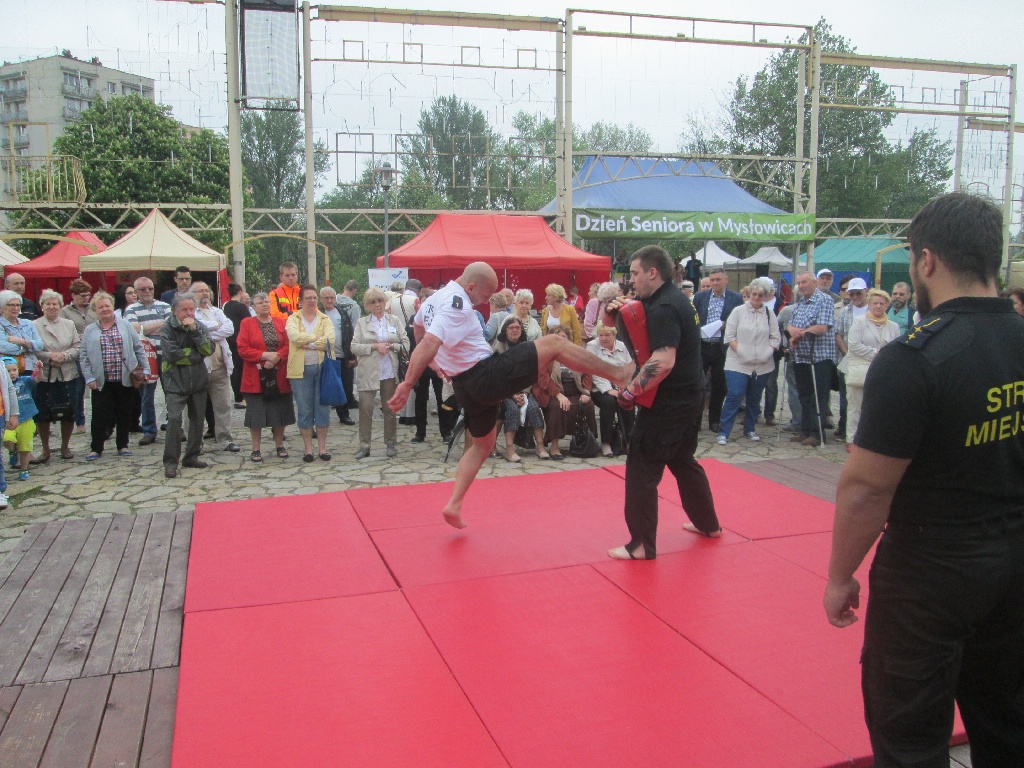 Miał on na celu ukazać jakimi umiejętnościami cechują się strażnicy z Mysłowickiej jednostki, jak i pokazać seniorom, że samoobrona jest bardzo pomocna w życiu codziennym. Pokazano również jak wykorzystać zwykłą laskę do podpierania się jako środka obrony przed napastnikiem.
