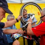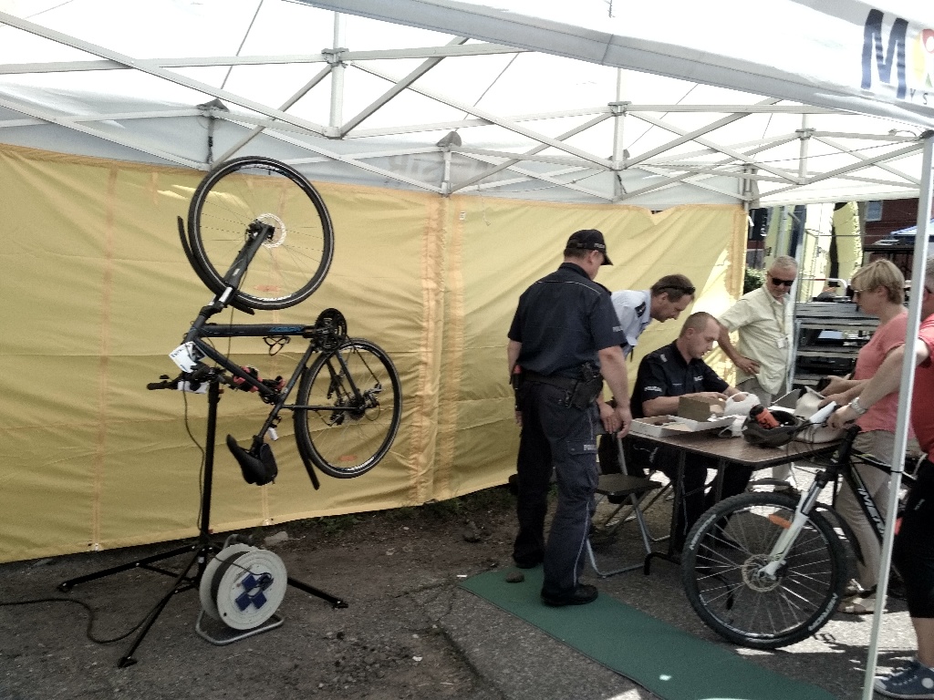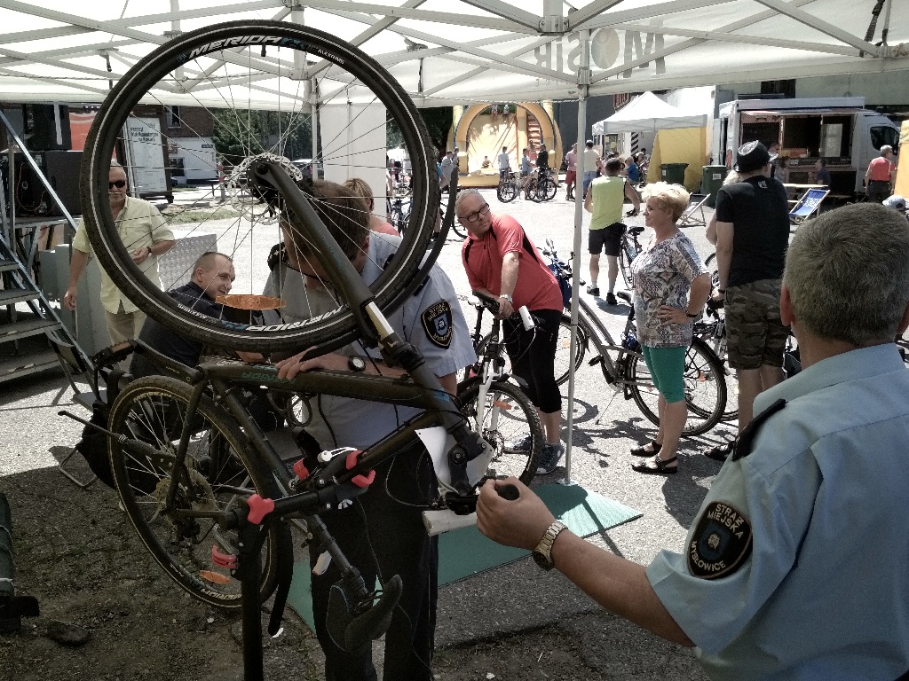 Tak więc poza kibicowaniem kolarzom i zabawom mysłowiccy mieszkańcy mieli okazję oznakować swój rower oraz sprawdzić jego stan techniczny. Akcja okazała się strzałem w dziesiątke co zaowocowało długą kolejką chętnych. W ciągu całej imprezy oznakowanych zostało 70 rowerów, a dla tych którzy nie mogli przyjechać i oznakować swojego roweru nic straconego! bedą mogli to zrobić juz w najbliższą sobotę 5.08.2017r od godziny 14:00 w Parku Słupna podczas odbywającego się festynu „Półmetek wakacji”