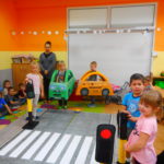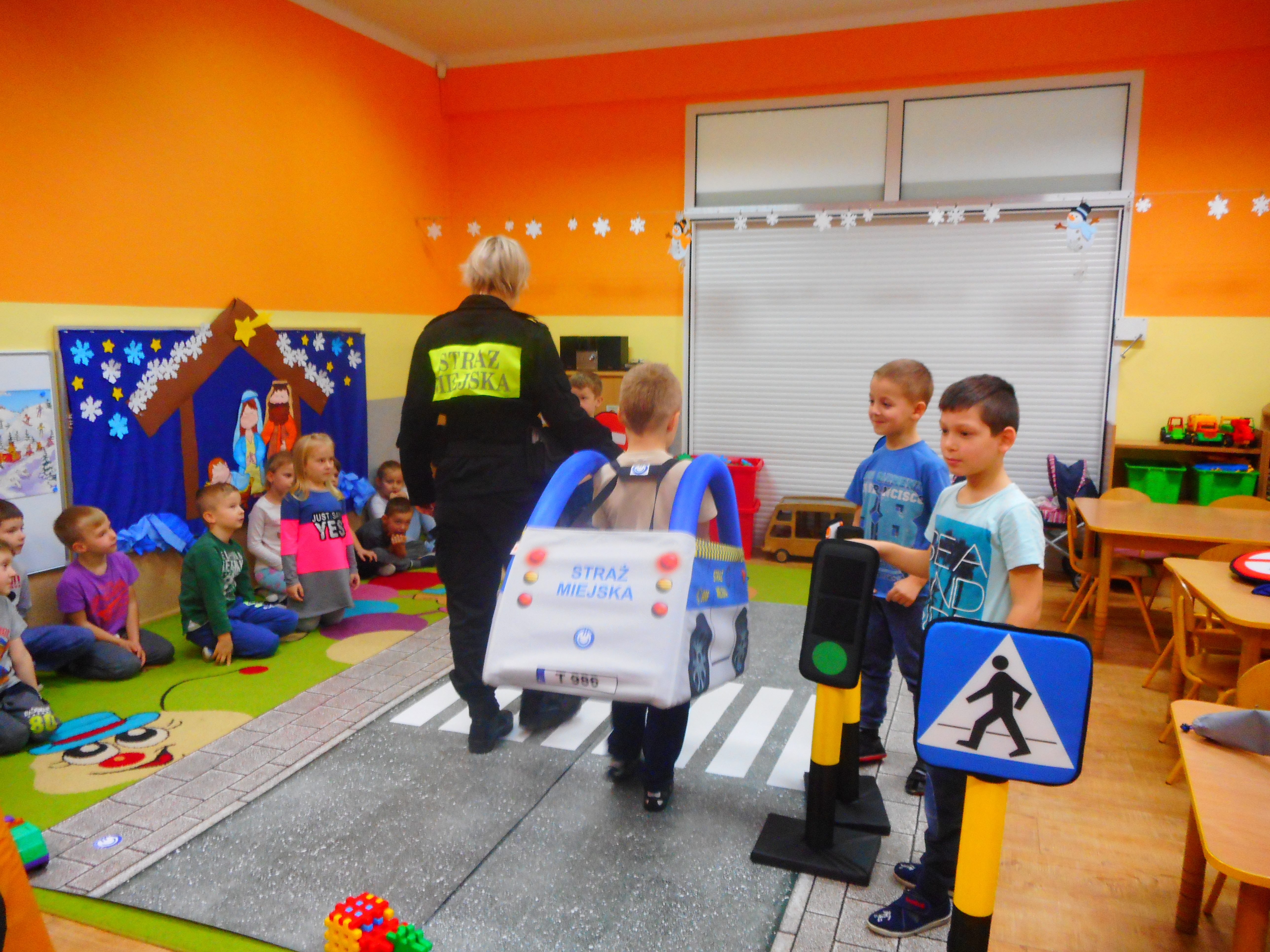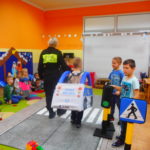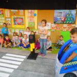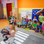 Funkcjonariusze odwiedzili Przedszkole nr 18 filia Wesoła oraz filia Stara Wesoła, Przedszkole nr 19 a także Niepubliczne Przedszkole „Akademia Małego Odkrywcy”. Prowadzący zajęcia Strażnicy Miejscy w rozłożonym na sali miasteczku drogowym prezentowali różne sytuacje drogowe. Dzieci uczyły się rozpoznawać znaki drogowe, znaczenia kolorów na sygnalizatorze świetlnym, oraz zasad bezpiecznego przejścia przez jezdnię. Autochodzik został przez dzieci bardzo dobrze przyjęty. Maluchy z Przedszkola nr 19 miały dla nas przygotowaną dodatkową niespodziankę w postaci koncertu instrumentalnego. Byliśmy pod wielkim wrażeniem ich zdolności muzycznych.