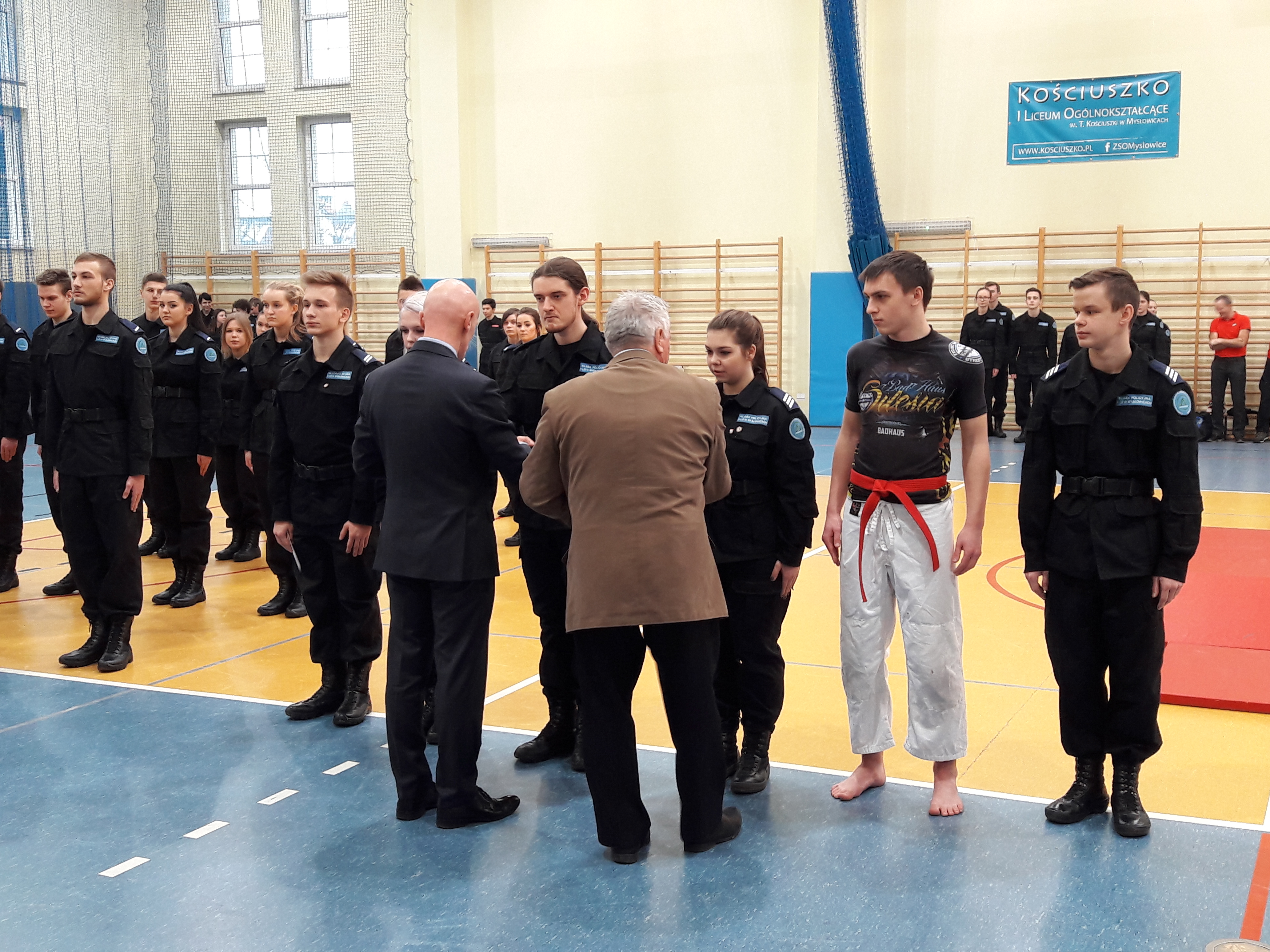 Młodzież zobowiązała się bronić dobrego imienia szkoły oraz mundurów, które noszą. Na zaproszenie szkoły w uroczystym apelu wzięło udział grono znakomitych gości, m.in. Pierwszy Zastępca Prezydenta Miasta Grzegorz Brzoska, Naczelnik Wydziału Bezpieczeństwa Publicznego i Reagowania Kryzysowego Urzędu Miasta Marek Lis, Wiceprezes Śląskiej Organizacji Wojewódzkiej Ligi Obrony Kraju Ryszard Kasprzyk oraz przedstawiciele mysłowickich służb mundurowych. Komendant Straży Miejskiej Ginter Płaza był pod wielkim wrażeniem musztry zaprezentowanej przez uczniów LO nr 2. Po złożonej przysiędze przez uczniów funkcjonariusze Straży Miejskiej przedstawili próbkę swoich umiejętności w sportowym pokazie sztuk walki. Klasy mundurowe zyskały w ostatnim czasie na popularności, również wśród młodzieży z Mysłowic. Jest to wyraźny znak, że w naszym mieście nie brakuje ochotników do stawania na straży prawa i zapewniania bezpieczeństwa jego mieszkańcom.