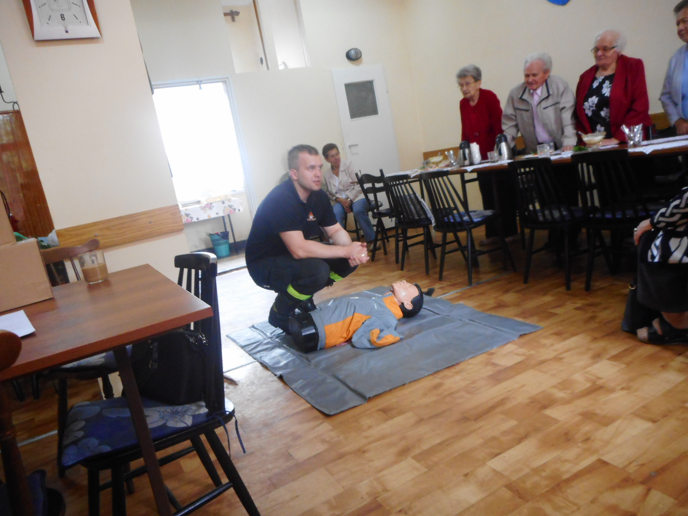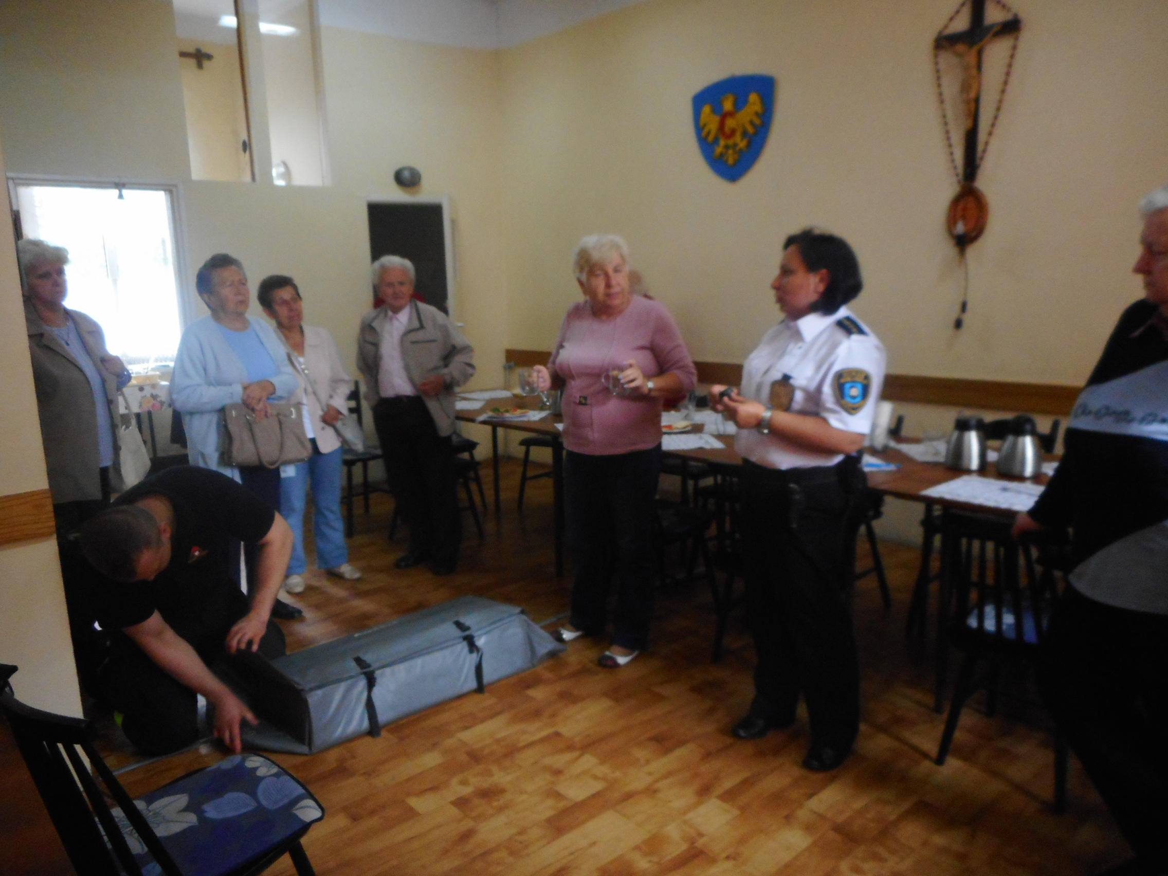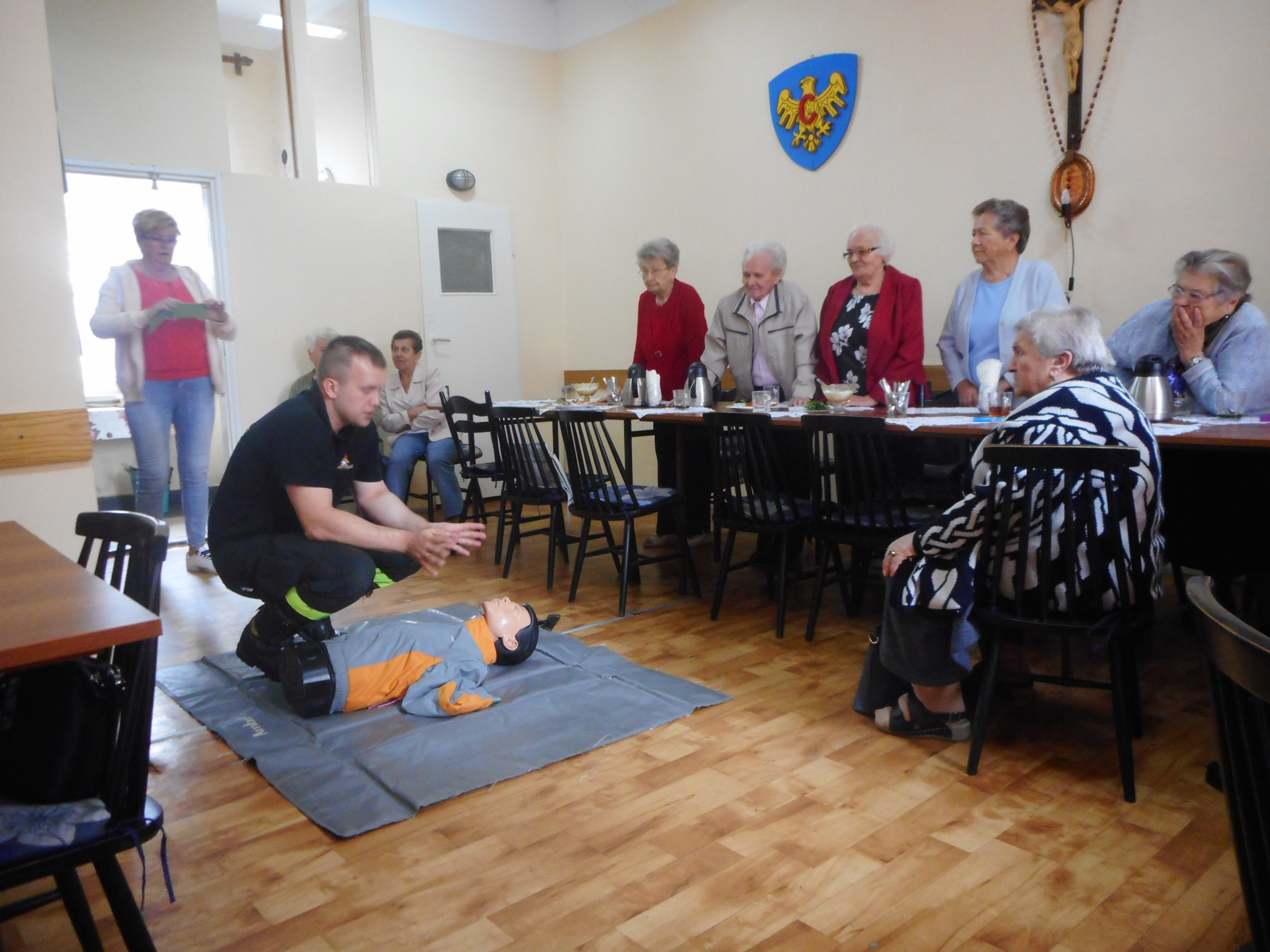 Zajęcia związane były z tematem pierwszej pomocy. Pracownicy Straży Miejskiej oraz PSP Mysłowice przeprowadzili prelekcje dotyczące sytuacji zagrażających życiu i zdrowiu oraz sposobów reagowania w razie wystąpienia zagrożeń. Seniorzy poznali zasady informowania odpowiednich służb, pozycje takie jak „koszyczek” czy „boczna ustalona”, a także zasady RKO.