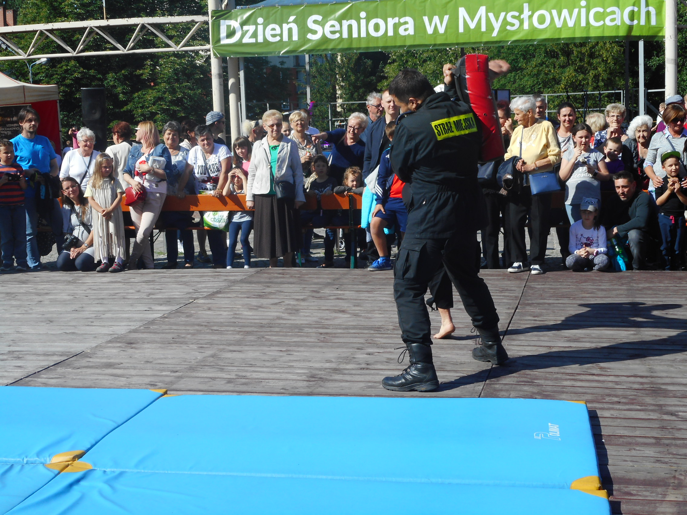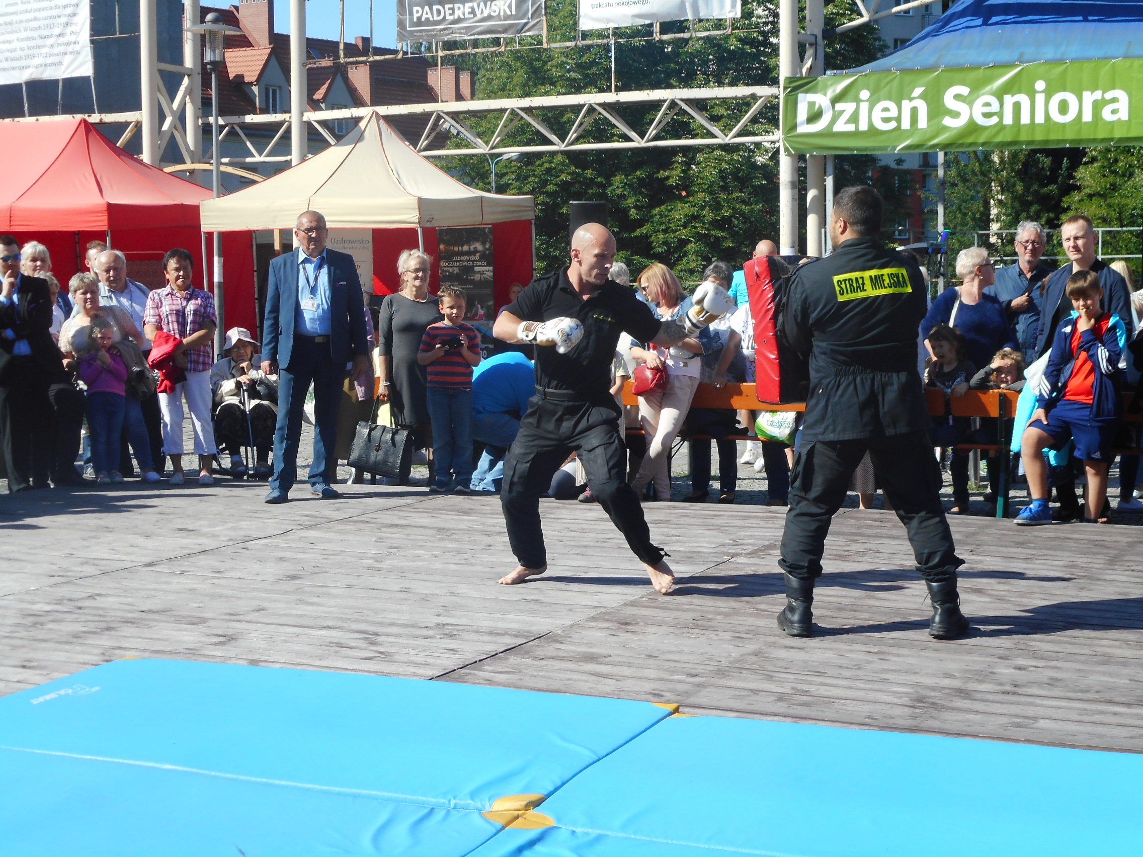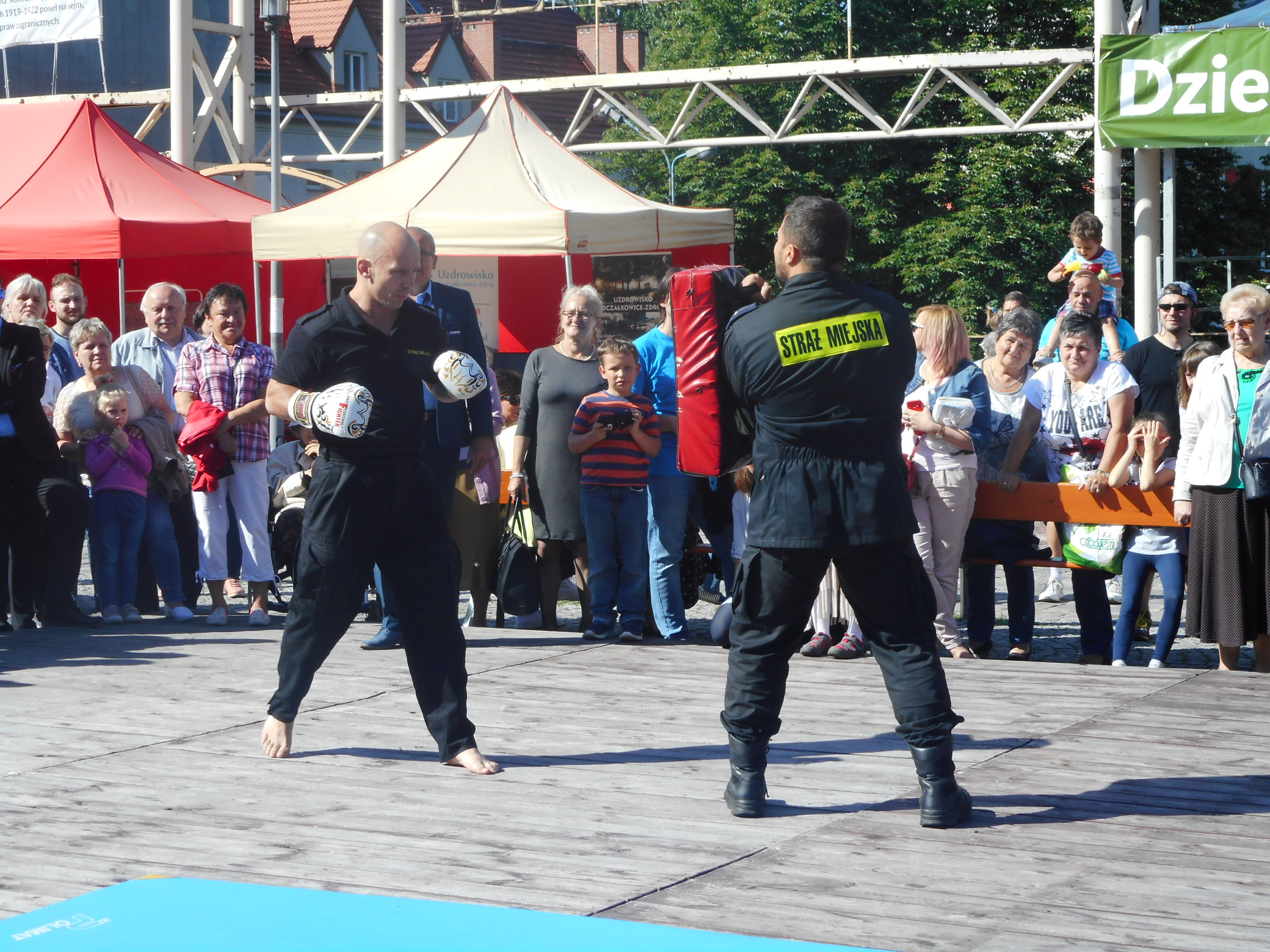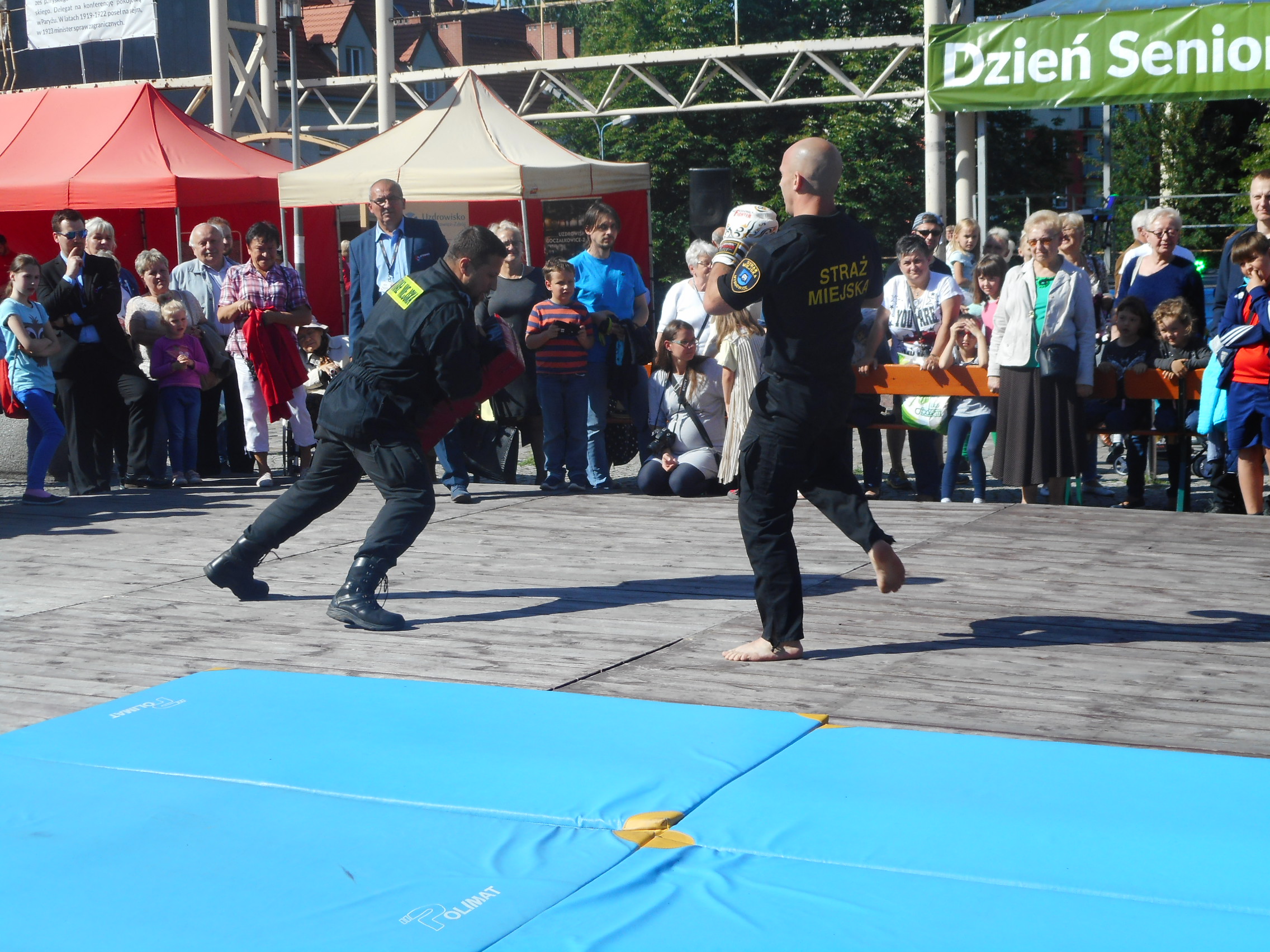 Szczególnie dużym zaintersowaniem cieszył się pokaz sztuk walki i samoobrony prowadzony przez doświadczonych w tej dziedzinie strażników. Każda z prezentowanych technik była nagradzana gromkimi brawami. W finale pokazu mistrz Europy Sebastian Stachoń zaprezentował bardzo trudne techniki wysokich kopnięć, co spotkało się z wielkim aplauzem ze strony publiczności. Pokaz ten był dowodem wysokiej sprawności fizycznej naszych strażników.
