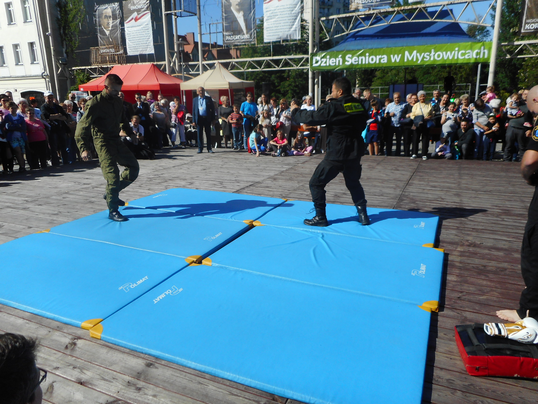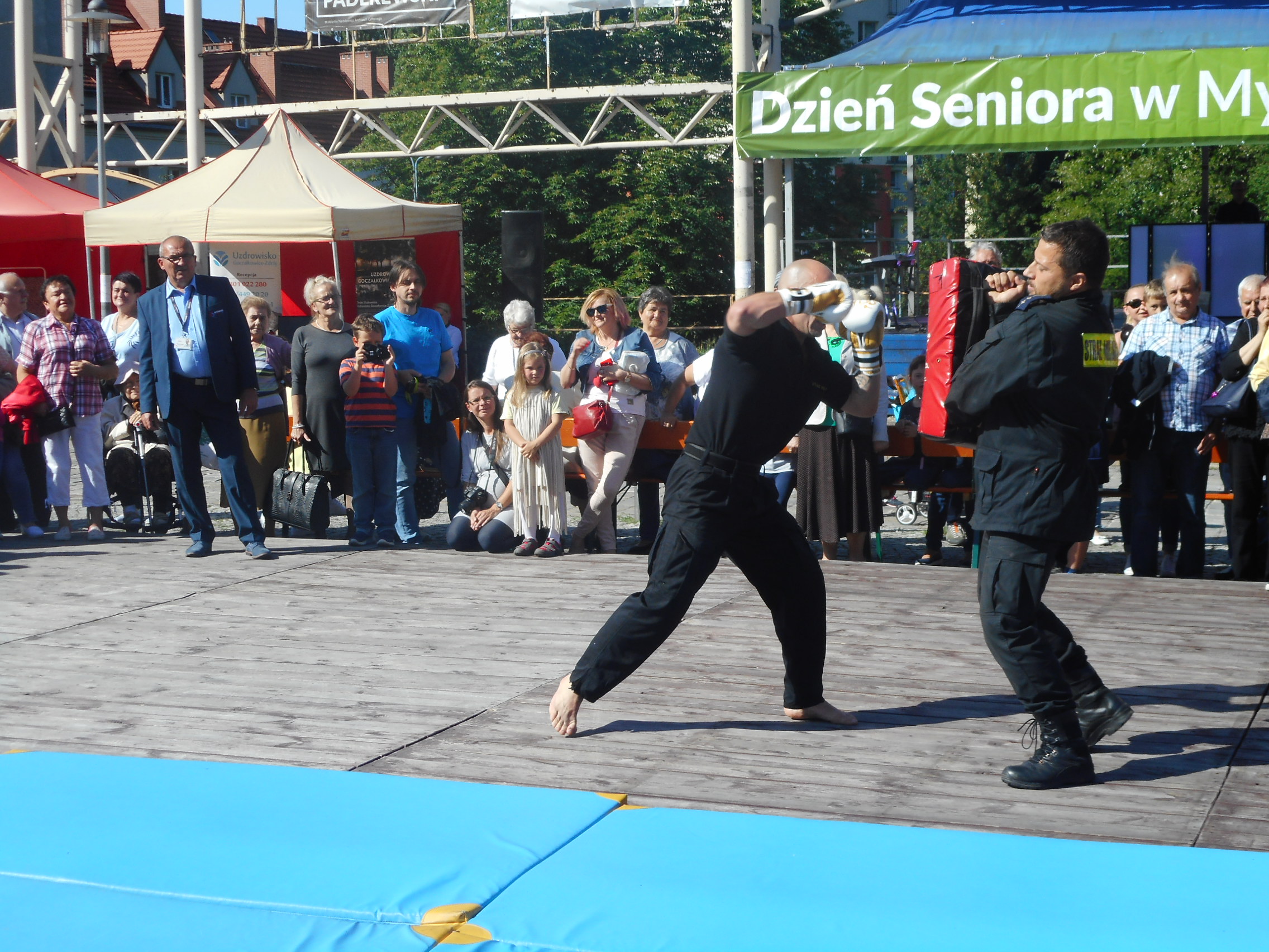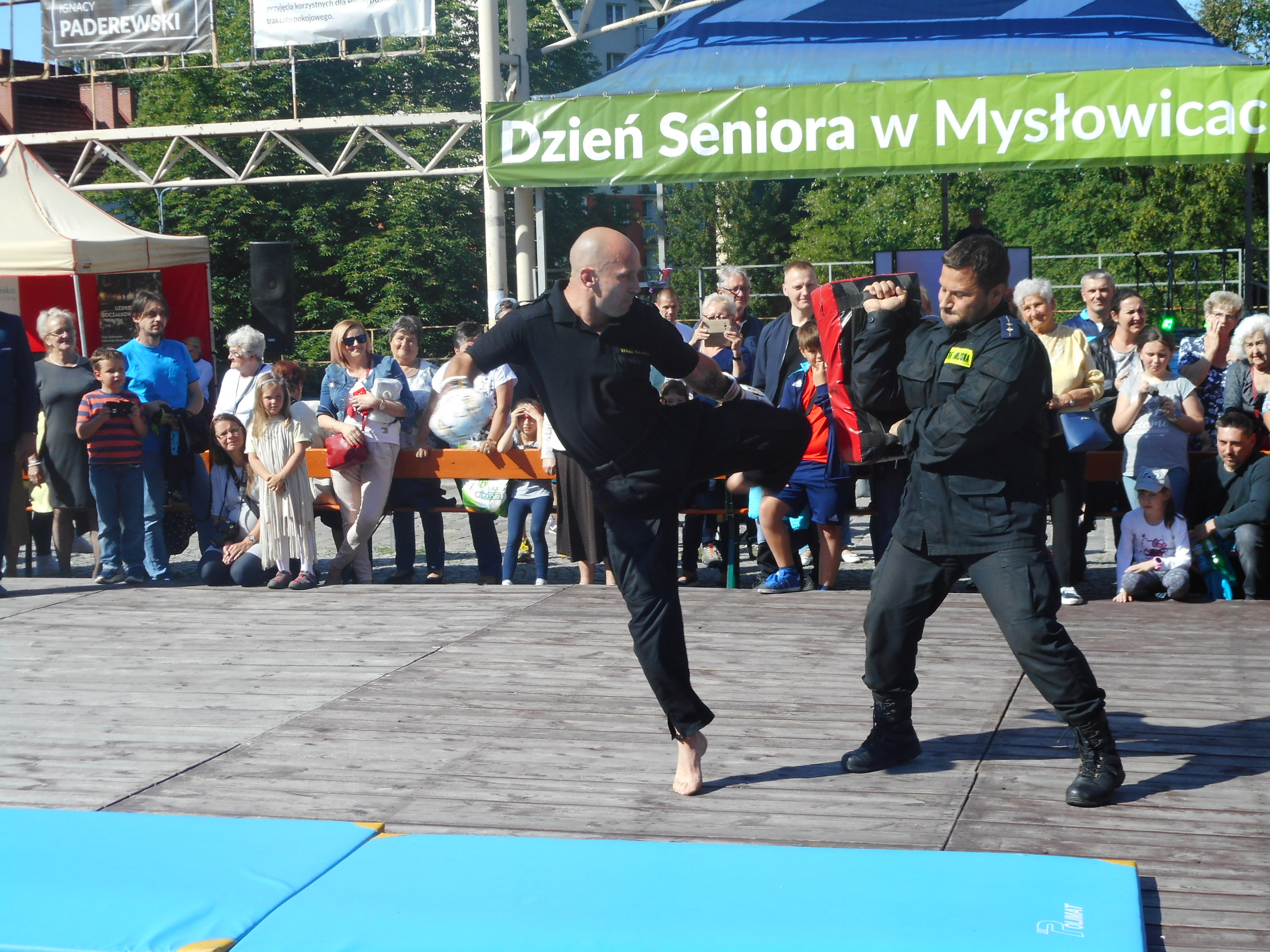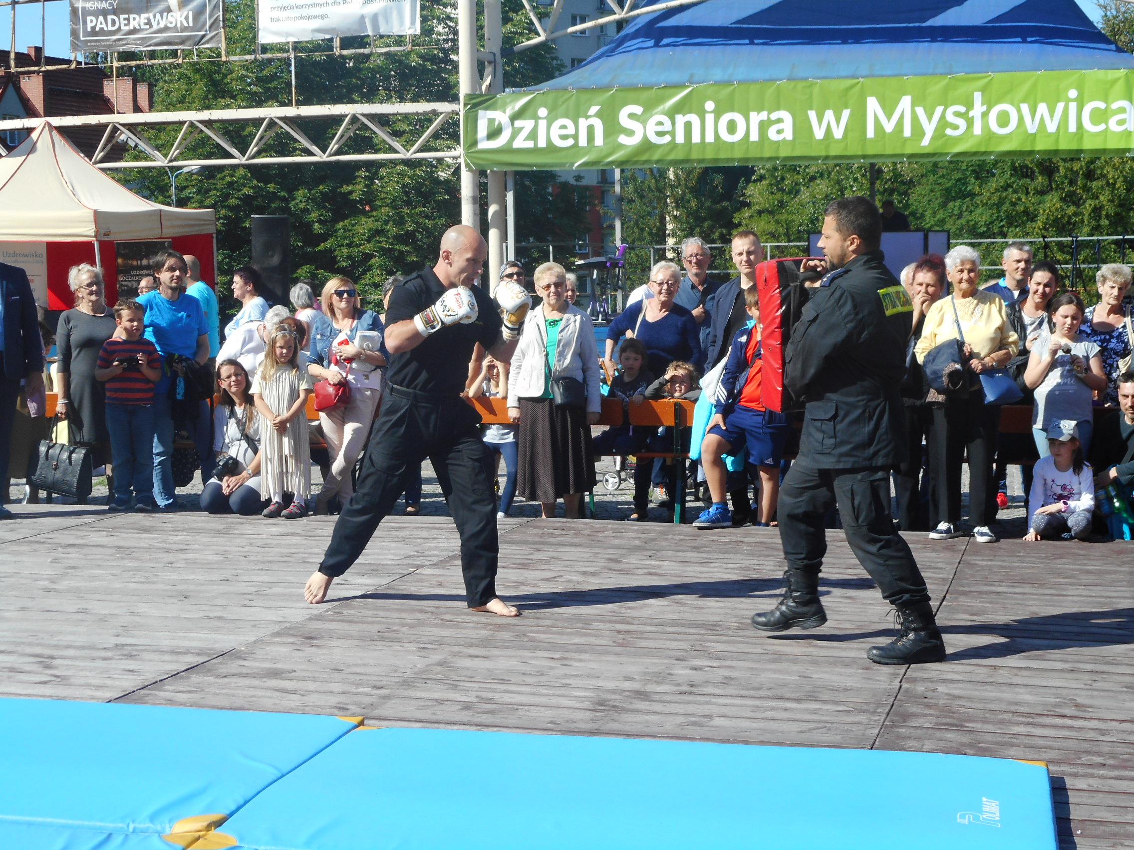 Szczególnie dużym zaintersowaniem cieszył się pokaz sztuk walki i samoobrony prowadzony przez doświadczonych w tej dziedzinie strażników. Każda z prezentowanych technik była nagradzana gromkimi brawami. W finale pokazu mistrz Europy Sebastian Stachoń zaprezentował bardzo trudne techniki wysokich kopnięć, co spotkało się z wielkim aplauzem ze strony publiczności. Pokaz ten był dowodem wysokiej sprawności fizycznej naszych strażników.