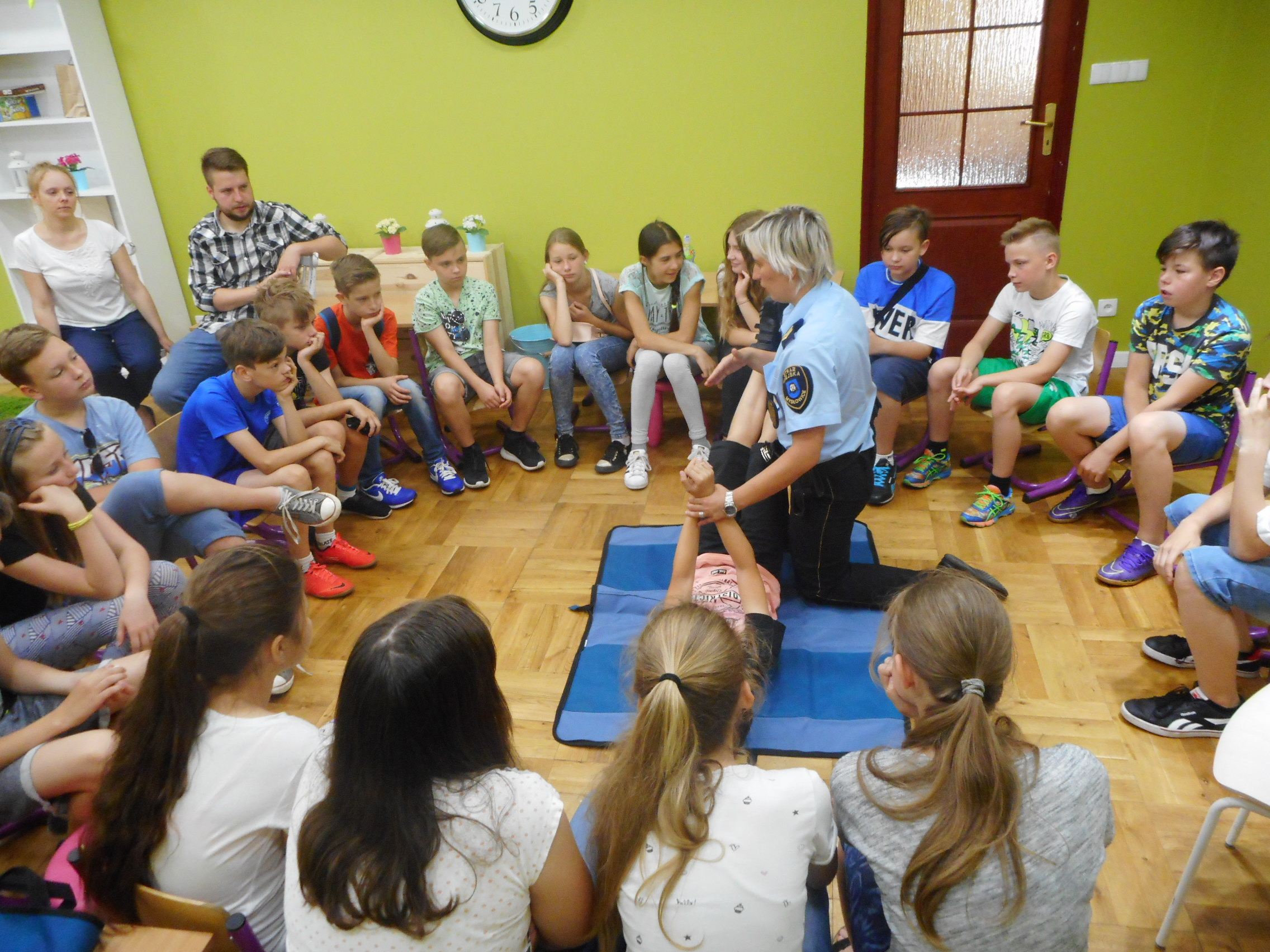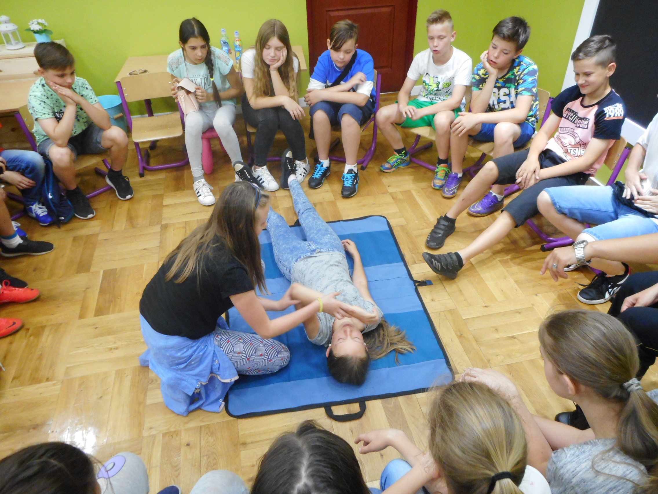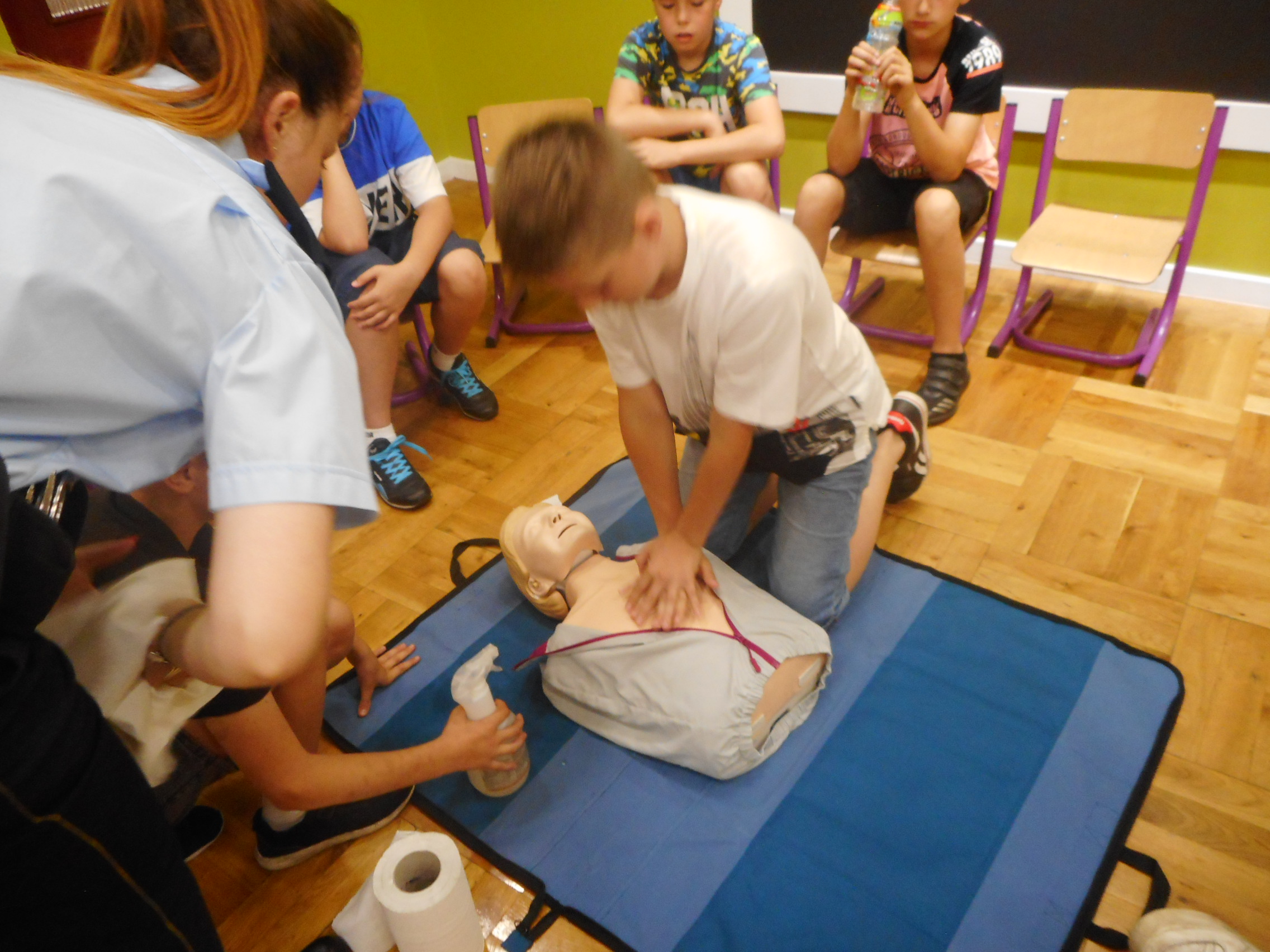 Uczniowie klas V zostali przeszkoleni przez funkcjonariuszy Straży Miejskiej z zakresu Pierwszej Pomocy Przedmedycznej. Dzieci uczyły się rozpoznawać sytuacje zagrażające życiu i zdrowiu oraz powiadamiać odpowiednie służby we wspomnianych sytuacjach. Młodzi mysłowiczanie mieli okazję poćwiczyć pozycję „koszyczek”, „boczną ustaloną” oraz nabyły umiejętności z zakresu RKO.