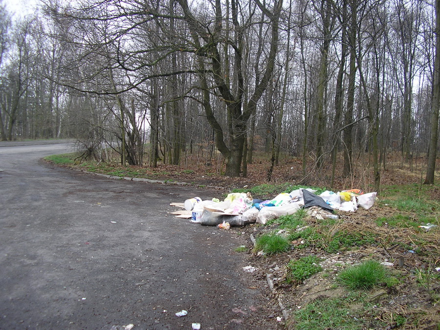 Kilka dni temu strażnicy miejscy podczas patrolu dzielnicy Ćmok, przejeżdżając ulicą Stadionową zauważyli stertę świeżo wyrzuconych śmieci w jednej z zatoczek parkingowych wzdłuż lasu.