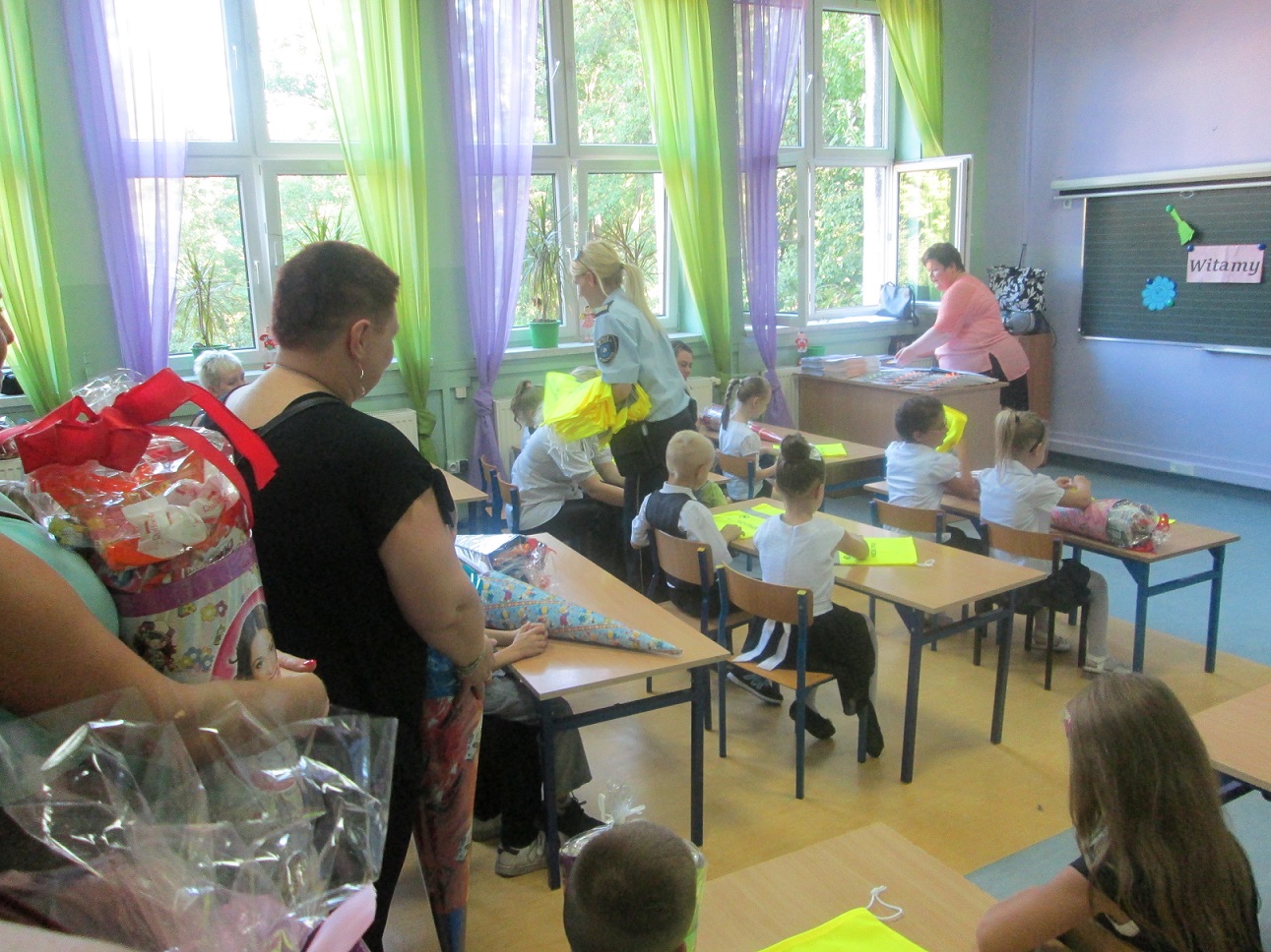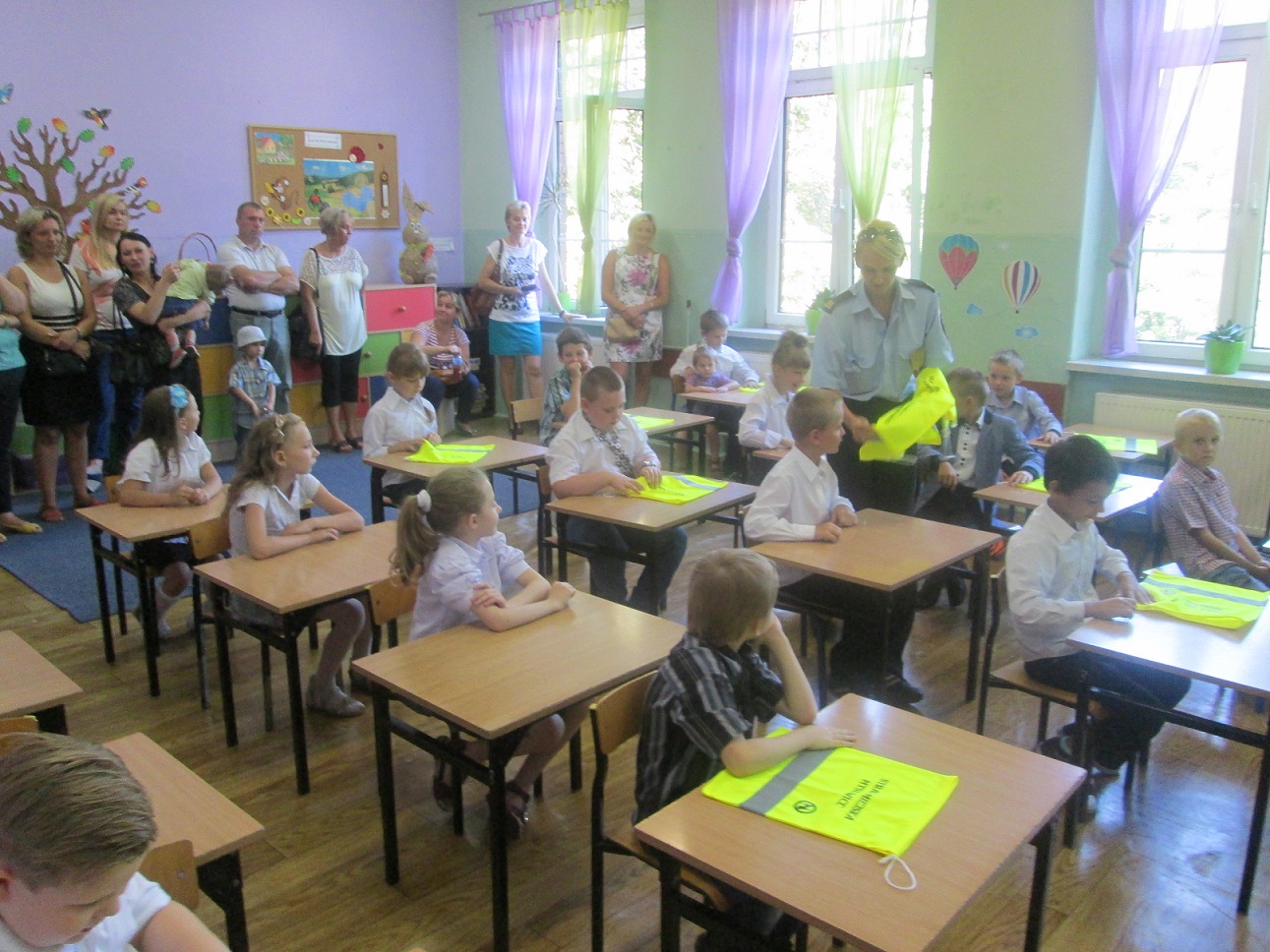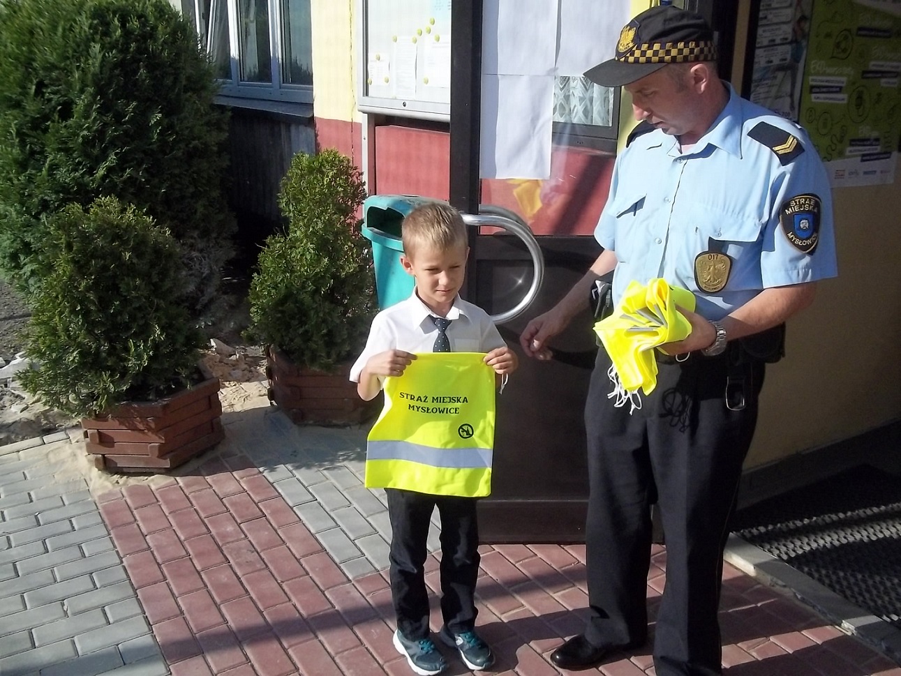 Pierwszego września w celu promowania bezpieczeństwa wśród dzieci, Strażnicy odwiedzający okoliczne szkoły rozdali wśród najmłodszych odblaskowe gadżety, które prócz swych praktycznych zastosowań pomogą im być bardziej widocznym w trakcie podróżowania między domem a szkołą.