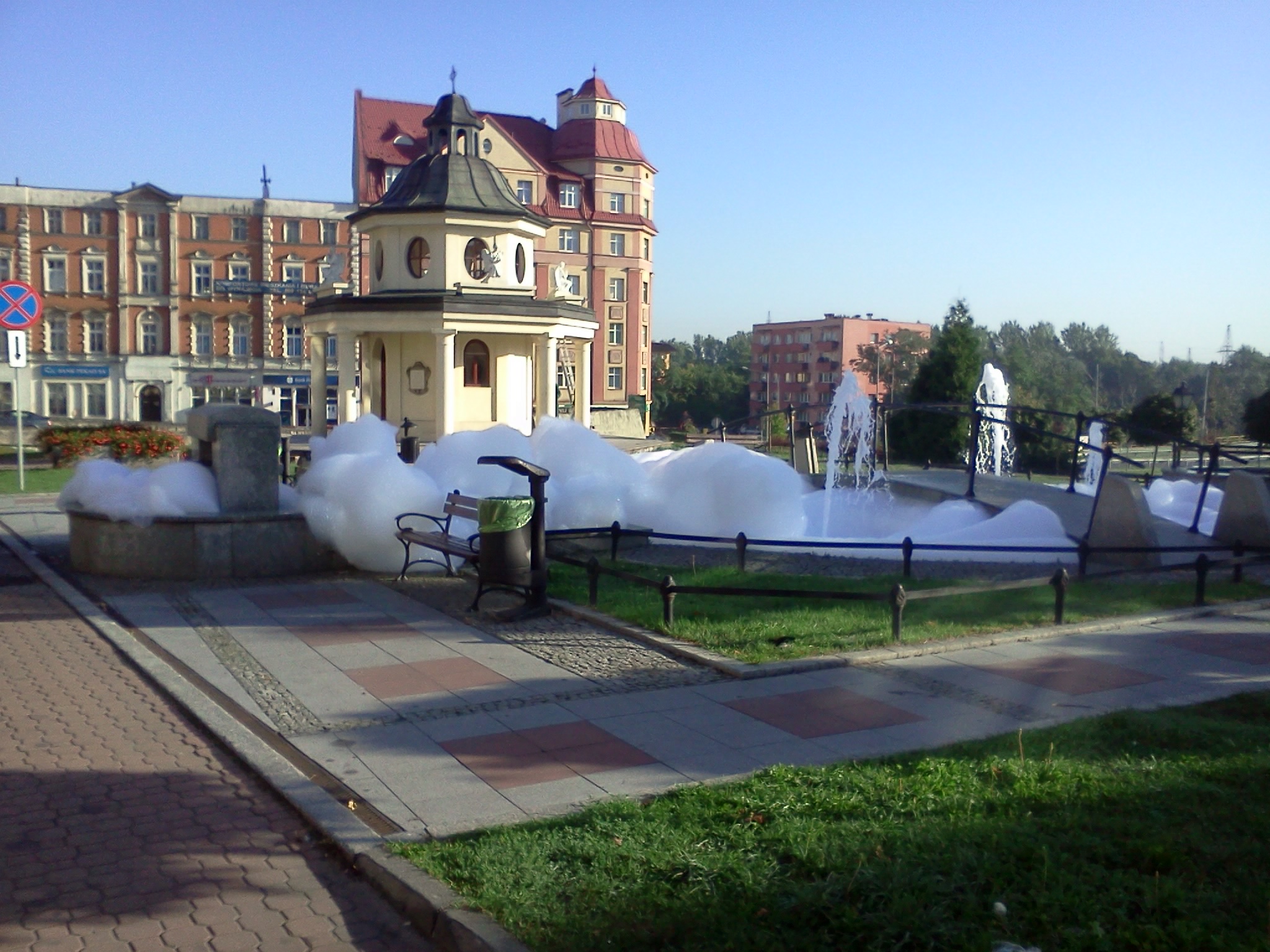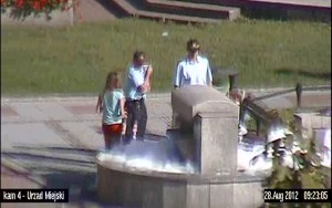 W dniu wczorajszym ok. godz 20.05 dyżurny Straży Miejskiej  podczas obserwacji monitoringu miejskiego zauważył jak dwie zakapturzone osoby podchodzą do fontanny miejskiej przy ul. Grunwaldzkiej i wlewają bliżej nieokreśloną zwartość butelki do jejgłównej niecki .[more…] Monitoring miejski zarejestrował jak podejrzani po wylaniu całej zawartości pojemnika do fontanny uciekli pomiędzy budynki mieszkalne. W dniu dzisiejszym dyżurny SM zawiadomił służby miejskie które natychmiastowo podjęły czynności które mają na celu oczyszczenie niecki fontanny oraz terenu jej okalającego. Komenda SM radzi nie bawić się pianą z fontanny gdyż nie znany jest skład chemiczny wlanej substancji. Przez cały dzień także patrole naszej komendy ostrzegały rodziców oraz dzieci aby uważały i nie podchodziły do fontanny do momentu usunięcia awarii przez MZGK.